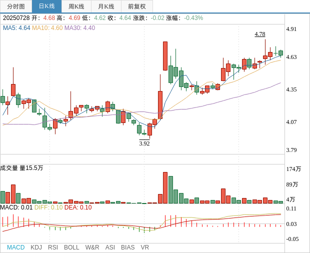 7月28日,华茂股份报收4.64元/股,跌幅为0.43%,成交额达到0.72亿,总市值为43.79亿。过去七个交易日内,华茂股份上涨了0.65%。股权变动可能引发投资者情绪的波动,部分投资者可能会因分红而持股信心增强,而股价短期内可能会随市场情绪波动。