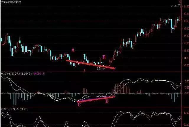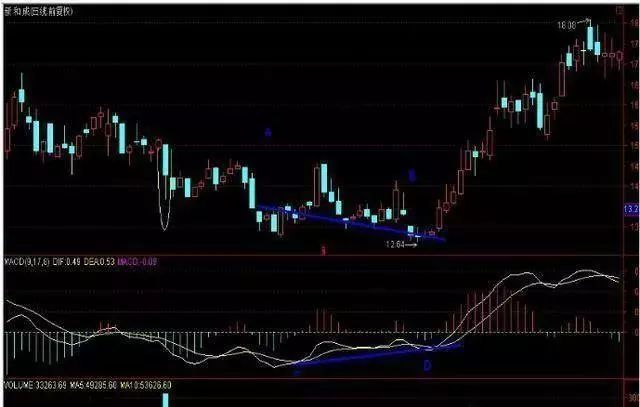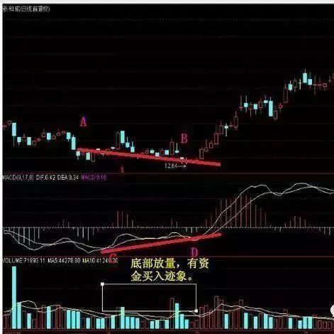 一切看起来很好,到底部了。那么接下来该看有没有主力了。我们观察到 在底背离 区域不远处,出现了巨阴线下跌!为什么会这样?应该是主力资金在低位想尽可能收集筹码,并且让一些套牢盘 加速卖出, 而在下跌途中故意砸盘。