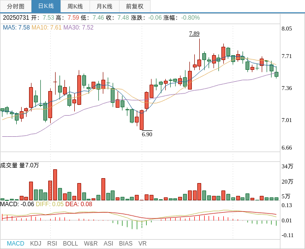 根据行情资料,7月31日大胜达股价收于7.48元,跌幅为0.8%,成交额为0.53亿,总市值41.14亿。近七个交易日累计跌幅为2.35%。并购重组的消息可能对投资者情绪产生一定影响,市场或对大胜达的未来发展持谨慎态度。股价可能在短期内受到波动影响,但长期来看,回购程序的成功实施或有助于稳定公司基本面,增强投资者信心。