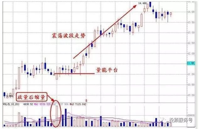 这是平台突破的最常见一种方式,此时一般我们要求量能的放出应该是在建立平台的时候放出,而建立平台后应该以缩量方式运行,此时的量能平台突破就是有效和有力度的。