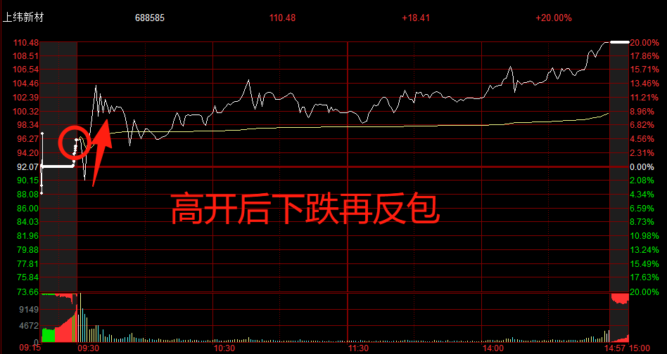 上纬开盘后有一个快速的翻绿,大概率是先前锁仓筹码的卖出,但随后又被抢了起来,甚至一度反包最高点。