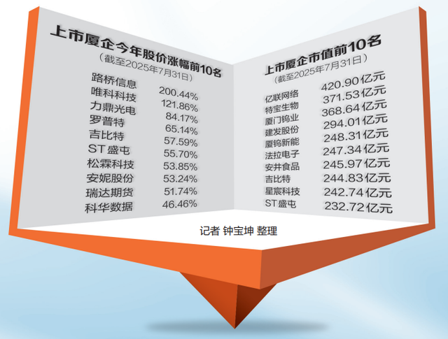 截至7月31日,北交所的上市厦企路桥信息今年表现最为突出,股价上涨200.44%。唯科科技上涨了121.86%,涨幅排在厦门股的第二位。力鼎光电今年大涨84.17%,涨幅位居第三。