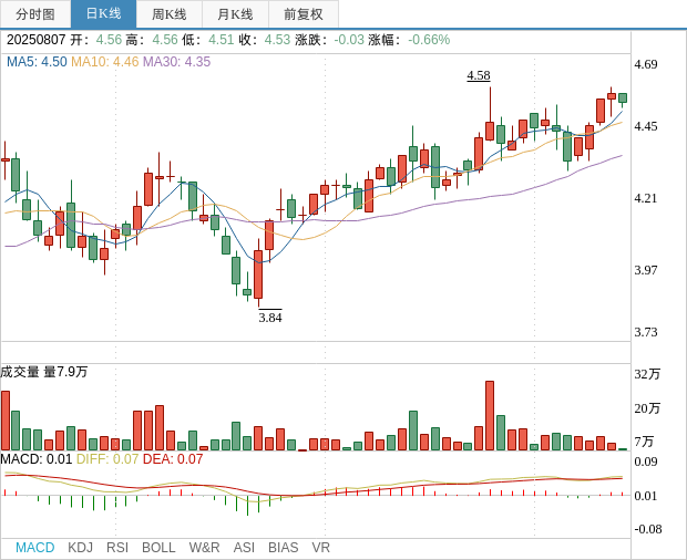 8月07日,亚邦股份的股票收盘价为4.53元/股,下跌0.66%,成交额为0.36亿元,总市值为25.83亿元。尽管近七个交易日内公司股价上涨了1.34%,但此次股权变动可能引发市场对公司未来战略方向的不确定性,从而导致股价的短期波动。投资者可能持观望态度,期待交易的最终结果。