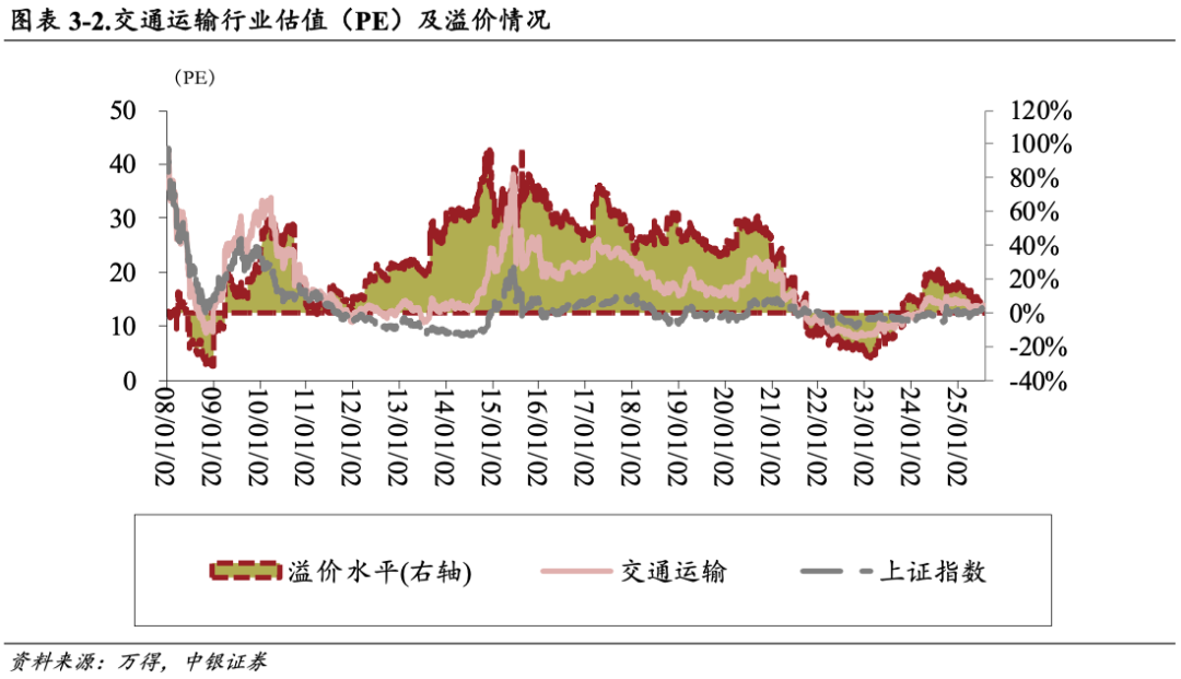 3.2.2与市场其他行业相比交运行业估值水平偏低