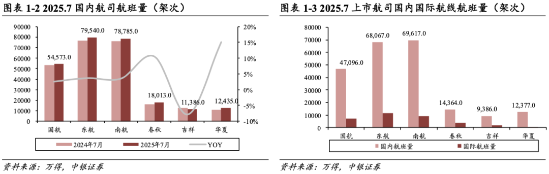 2.1.2 量:2025年7月货运执飞航班量国内航线同比上升,国际航线同比上升