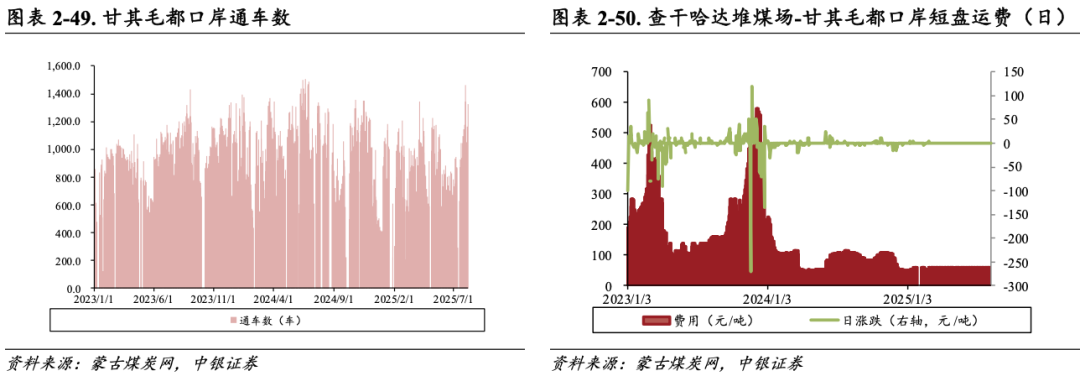 8月2日-8月7日,查干哈达堆煤场-甘其毛都口岸炼焦煤短盘运费日均60.00元/吨;7月28日-8月3日,通车数环比上升14.44%,日平均通车981.43辆。查干哈达堆煤场-甘其毛都口岸炼焦煤短盘运费环比保持不变,8月2日-8月7日均值达60.00元/吨。