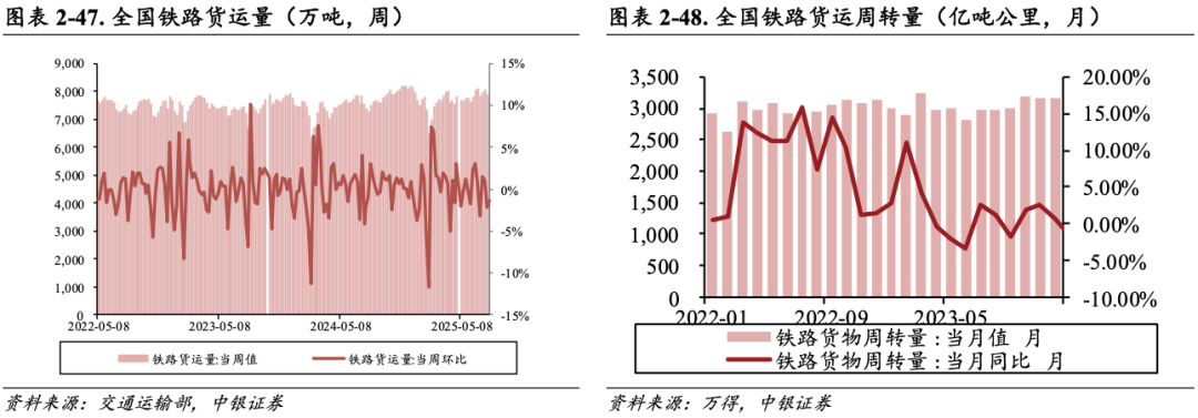 7月28日-8月3日,国家铁路运输货物7769.4万吨,环比下降1.39%。根据交通运输部发布数据显示,2025年6月,全国铁路货运周转量为2942.78亿吨公里,同比下降0.10%。