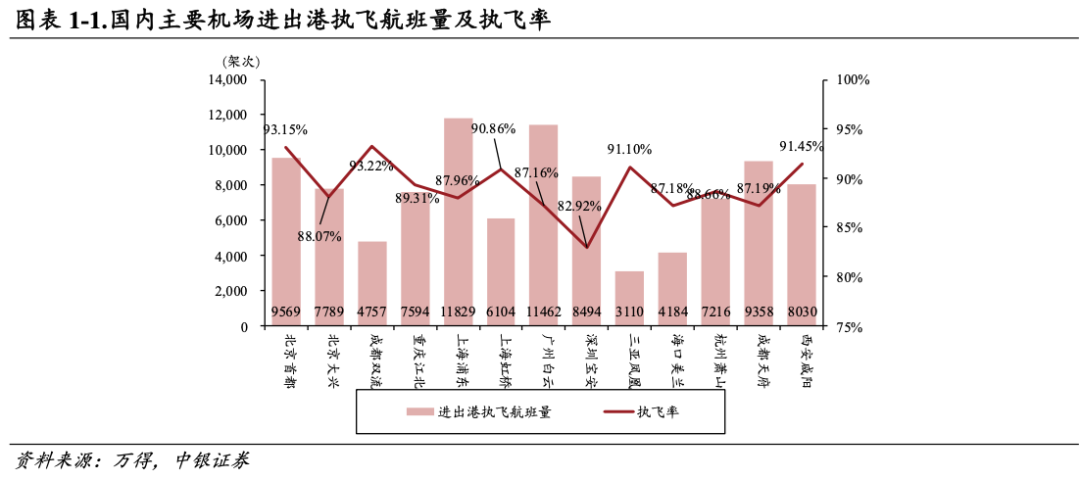 机场方面: 2025.8.2-2025.8.8:国内进出港执飞航班量TOP5机场依次是上海浦东机场(11829班次)、广州白云机场(11462班次)、北京首都机场(9569班次)、成都天府机场(9358班次)、深圳宝安机场(8494班次)。各枢纽机场国内航班量周环比变化:首都-0.90%、大兴-0.56%、双流+4.02%、江北-0.62%、浦东+6.47%、虹桥+4.72%、白云-3.93%、宝安-7.65%、三亚+0.81%、海口+1.65%、萧山-0.48%、天府+0.33%、咸阳-0.35%。