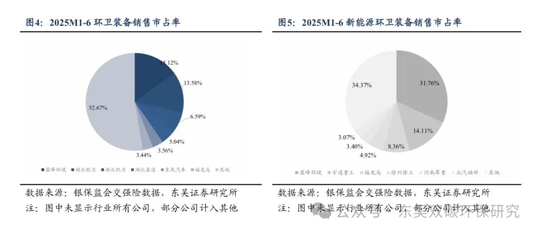 2025M1-6 环卫新能源销量同增90.56%,渗透率同比提升7.24pct至15.86%。根据银保监会交强险数据,2025M1-6,环卫车合计销量38164辆,同比变动+3.59%。其中,新能源环卫车销售6054辆,同比变动+90.56%,新能源渗透率15.86%,同比变动+7.24pct。