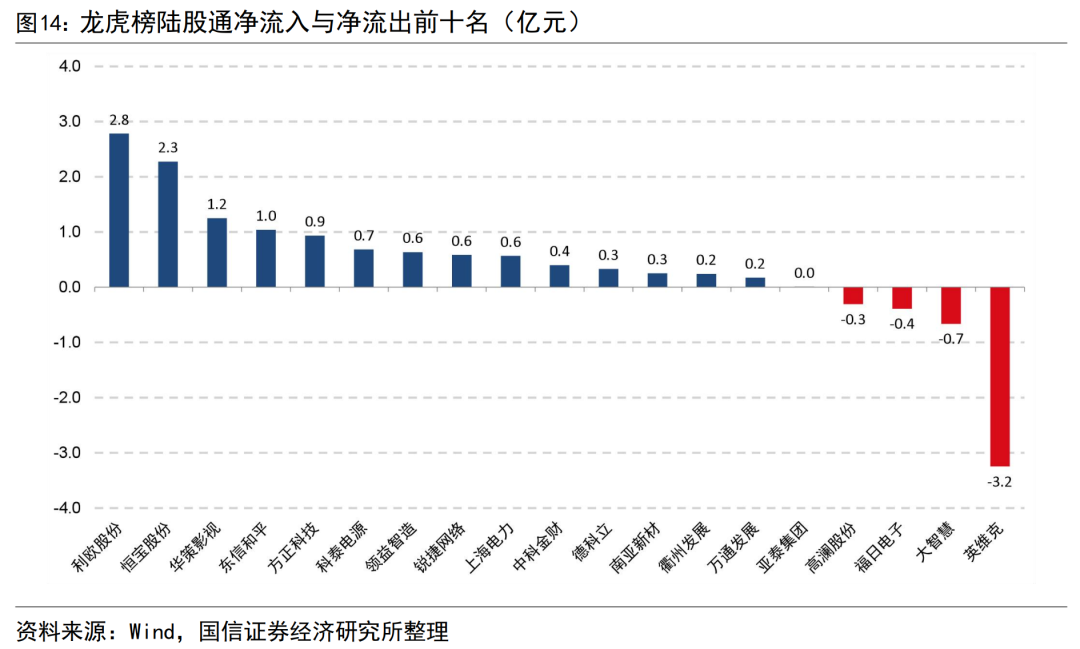 20250818披露龙虎榜数据中,陆股通净流入前十的股票是利欧股份、恒宝股份、华策影视、东信和平、方正科技、科泰电源、领益智造、锐捷网络、上海电力、中科金财、德科立、南亚新材、衢州发展、万通发展、亚泰集团等,陆股通净流出前十的股票是英维克、大智慧、福日电子、高澜股份等,下图展示了今日龙虎榜披露的陆股通买卖股票中净流入与净流出的前十名,不足十名时直接取现有数量。