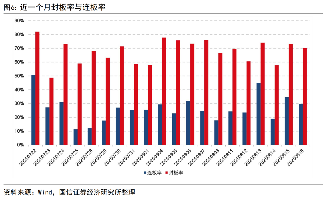 今日封板率70%,较前日下降3%,连板率30%,较前日下降5%,近一个月封板率与连板率如下图所示。