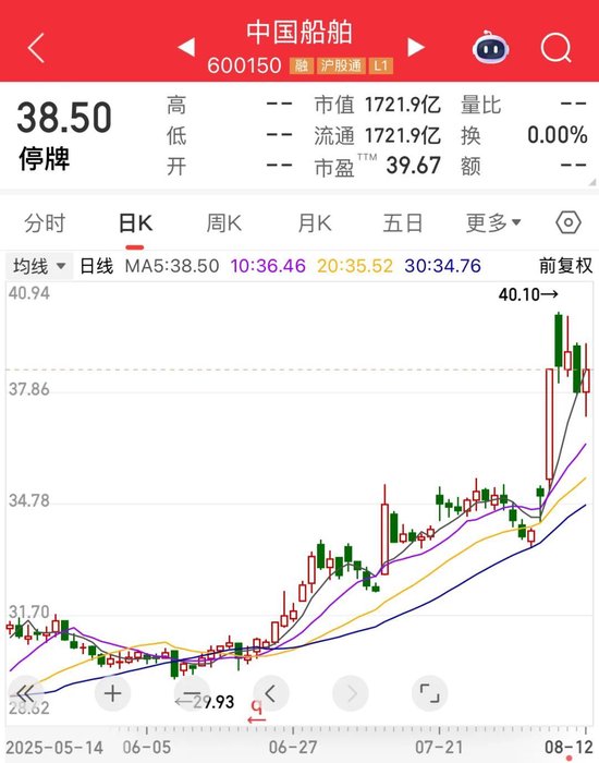 8月18日晚间,中国船舶发布《关于公司股票复牌的提示性公告》,公司股票将于2025年8月19日开市起复牌,敬请广大投资者注意。