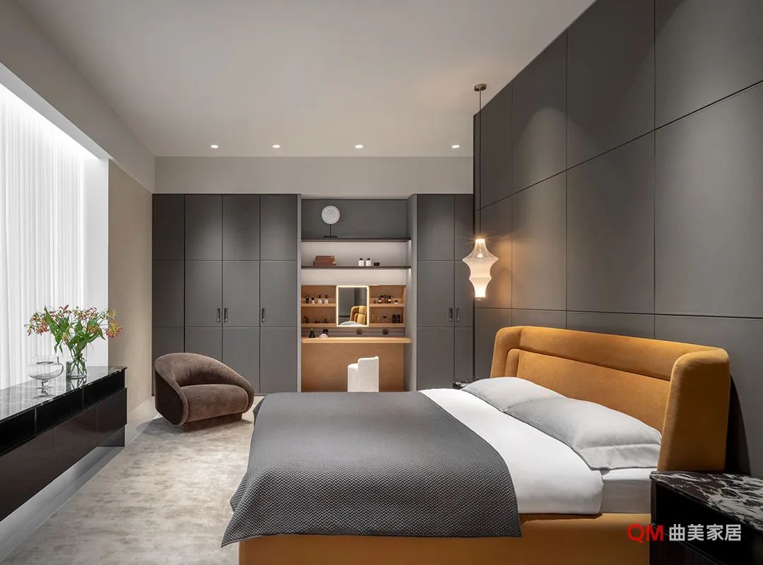 定制系列的20余款原创板材花色,精准满足多元审美需求,贯穿全屋的意式简奢设计一气呵成。