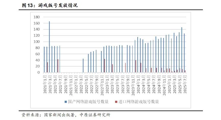 2025年7月共发放国产游戏版号127款,环比减少20款,同比增加22款;发放进口游戏版号7款,环比减少4款,同比增加7款。2025年1-7月共发放国产游戏版号884款,同比增加151款,发放进口游戏版号62款,同比增加1款。