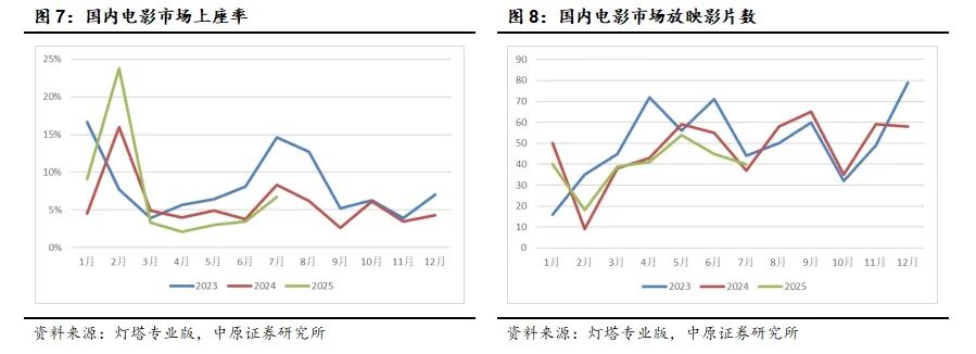 2025年1-7月国内电影市场总票房332.99亿元,同比增加13.72%,观影人次7.49亿,同比增加9.99%。