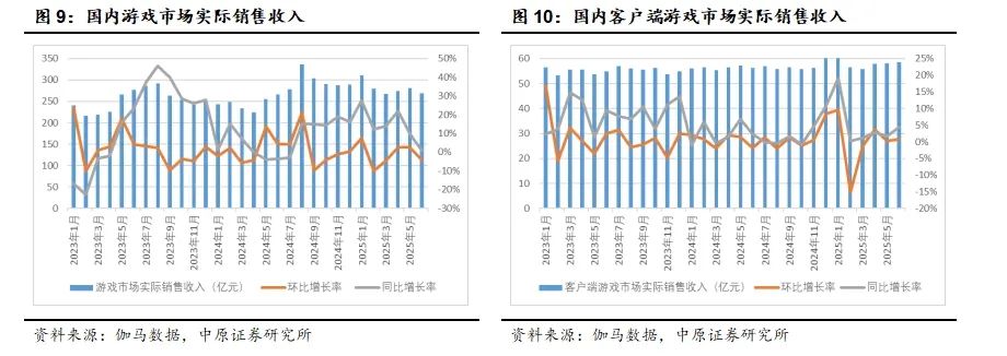 根据伽马数据发布《2025年1-6月中国游戏产业报告》显示,2025年1-6月,国内游戏市场实际销售收入1680亿元,同比增长14.08%,再创新高。游戏用户规模近6.79亿,同比增长0.72%,也达到历史新高。市场收入与用户规模同步增长得益于多种因素:一是多款游戏新品上市后表现不凡,超出预期;二是多款长青游戏运营良好,收入稳中有升;三是电子竞技和小程序游戏增长势头强劲。