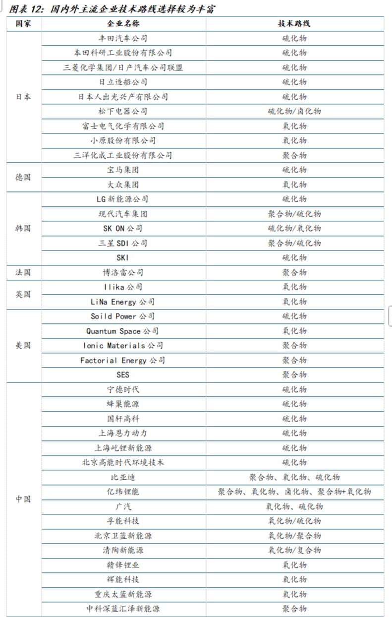 固态电解质为全固态锂电池技术的核心,从下游选择来看目前硫化物和氧化物为主流技术路线。