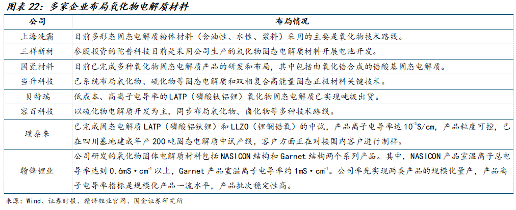 2.2 氧化物:离子电导率适中且稳定性强,产业化进展持续推进