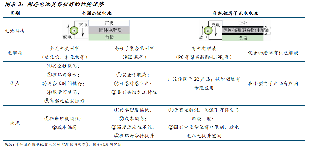 固态电池在安全性、能量密度和集成性方面均优于液态电池,车厂和电池厂快速布局将为材料端的需求放量带来支撑。