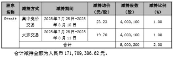 近日公司收到股东Strait Co, Ltd.(以下简称“Strait”)出具的《关于股份减持计划实施情况的告知函》,本次减持计划实施完成。