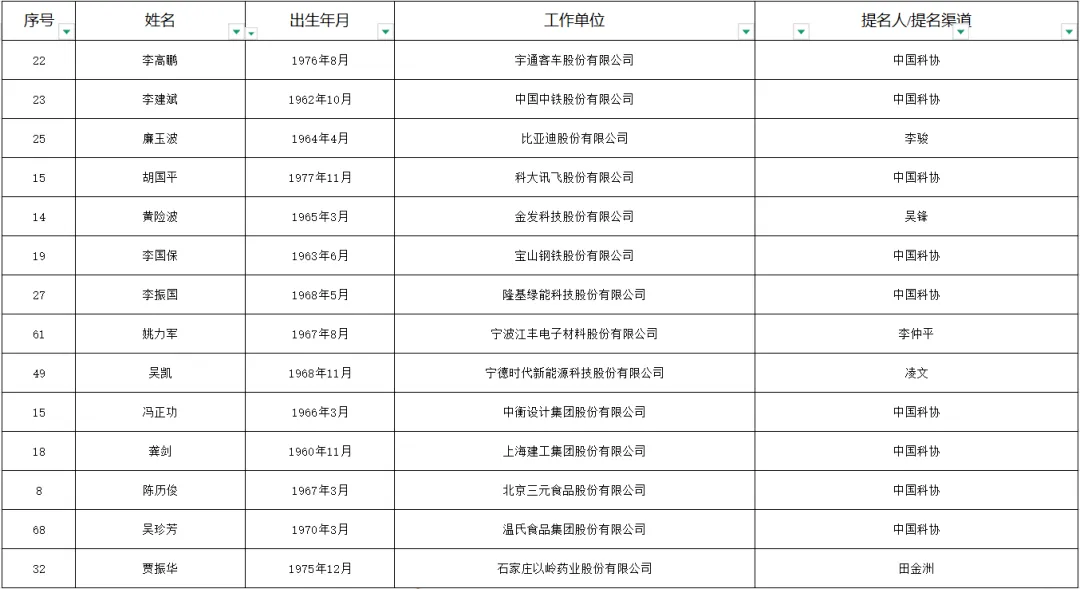 院士增选有效候选人名单中,部分科学家来自上市公司