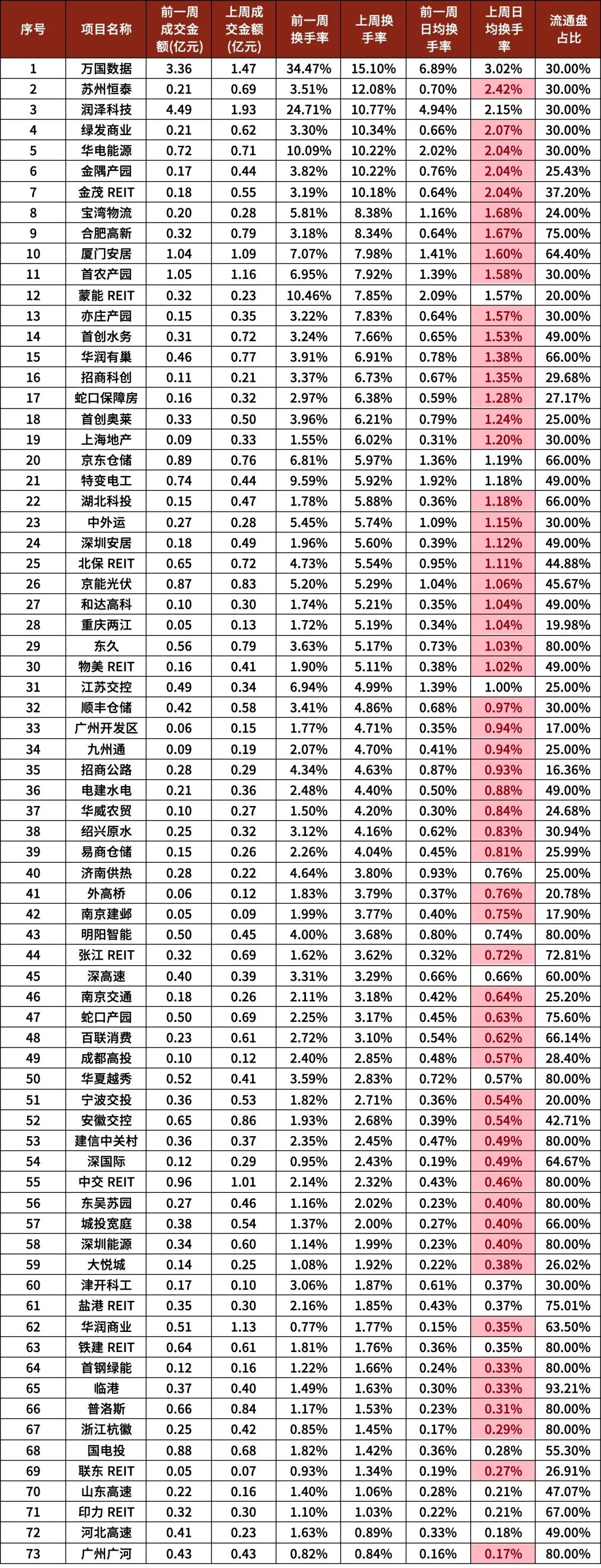 (按全周换手率排序)