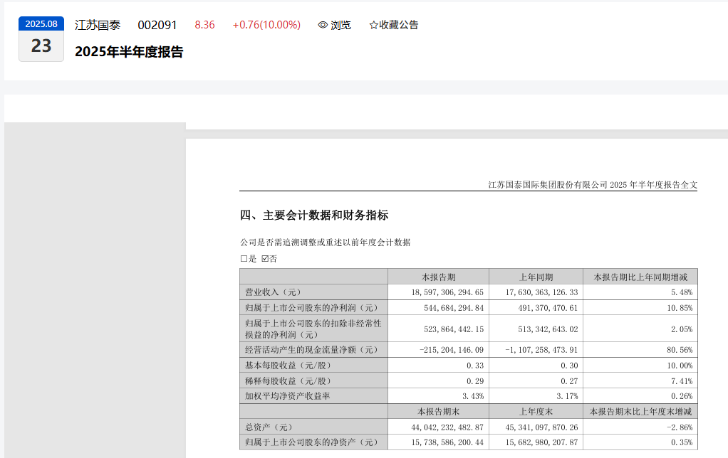 证券代码:002091证券简称:江苏国泰公告编号:2025-66