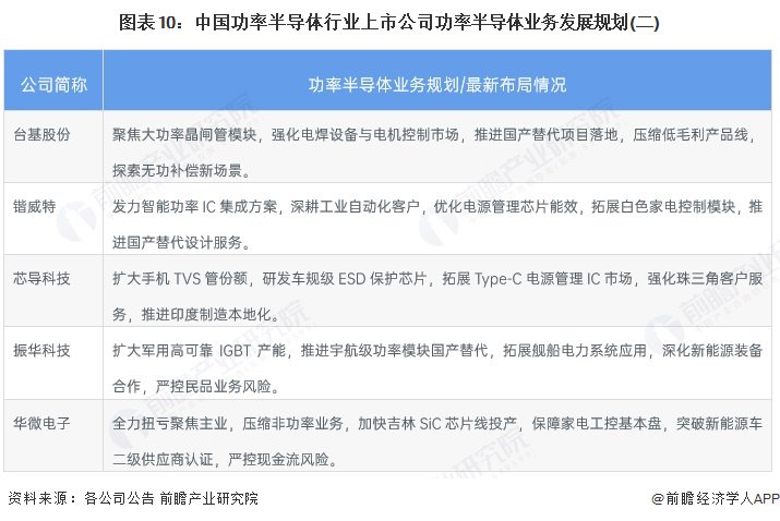 未来全行业通过产能扩张、车规认证与国产替代构建竞争壁垒。新能源驱动方面,斯达半导、士兰微等头部企业加速车规级IGBT模块扩产,宏微科技、新洁能同步发力光伏储能市场;技术升级层面,华润微、扬杰科技12英寸线及SiC产能成重点,东微半导超级结MOSFET与闻泰科技SiC器件布局第三代半导体;全球化竞争加剧,闻泰科技、斯达半导拓展欧美车企供应链,芯导科技、苏州固锝推进东南亚制造本地化。中小企业则强化细分领域优势,派瑞股份绑定特高压电网,锴威特深耕智能功率IC集成,振华科技巩固军工高可靠需求。各企业具体规划如下表所示: