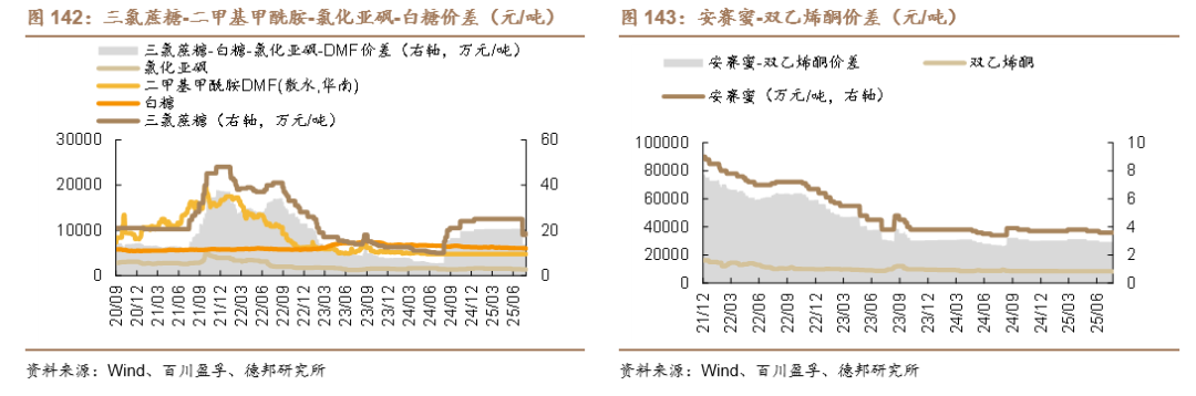 2)供给短缺或约束的行业率先迎来弹性。部分化工品的供给端已出现扰动,关注相关企业涨价带来的业绩弹性。①维生素:巴斯夫停产与帝斯曼业务剥离,行业格局或已重大改变,本轮行情有望超预期。关注:浙江医药、新和成、能特科技。②三氯蔗糖:进入长协订单旺季龙头挺价意愿较强,本轮涨价有望超预期。关注:金禾实业。③制冷剂:2025年初步配额方案符合预期,二代加速淘汰趋势不变,三代利空风险出尽,叠加内外贸双旺态势,制冷剂已开启新一轮涨幅。关注:巨化股份、三美股份、东岳集团。④涤纶长丝:回调后当前赔率较高,据百川盈孚数据显示,下游织造并不悲观,旺季有望迎来价格价差弹性。关注:桐昆股份、新凤鸣。