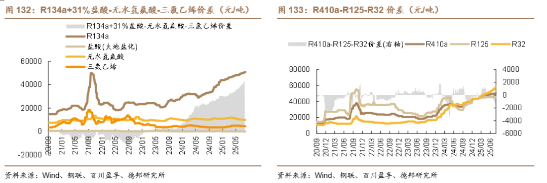 四氯乙烯:本周四氯乙烯价格为3682元/吨,环比-4.9%。供应端:本周供应量小幅减少,场内装置正常生产,个别企业负荷下调,出货无阻。据统计,本周四氯乙烯周度产量为 4262 吨,开工率 75.64%,较上周下降 1.03%。需求端:本周,国内制冷剂 R125 市场暂稳,企业报盘坚挺,行情波动有限。当前生产配额政策约束下,市场供应弹性受限,企业 R125 资源混配自用为主,结合当前单质需求较为平稳,R125 市场交投氛围表现一般。周内企业按需生产为主,内贸配额继续消化,淡季行情下外贸市场采购情绪有所回落。整体来看,近日 R125 市场盘整过渡,同时 R125 作为 R410a、R404a 等混合制冷剂的关键组分,下游混配需求仍存,现阶段对制冷剂 R125 市场稳健运行支撑尚存。截至发稿,主流企业出厂参考报价在 45000-49000 元/吨,实单成交存在差异。成本端:本周四氯乙烯成本价格整体回落。本周国内液氯市场先跌后涨,企业灵活出货。国内二氯丙烷市场价格继续上行,场内交投尚可。