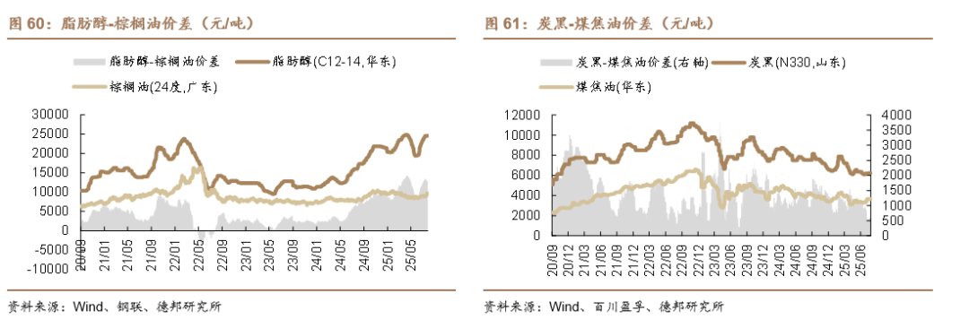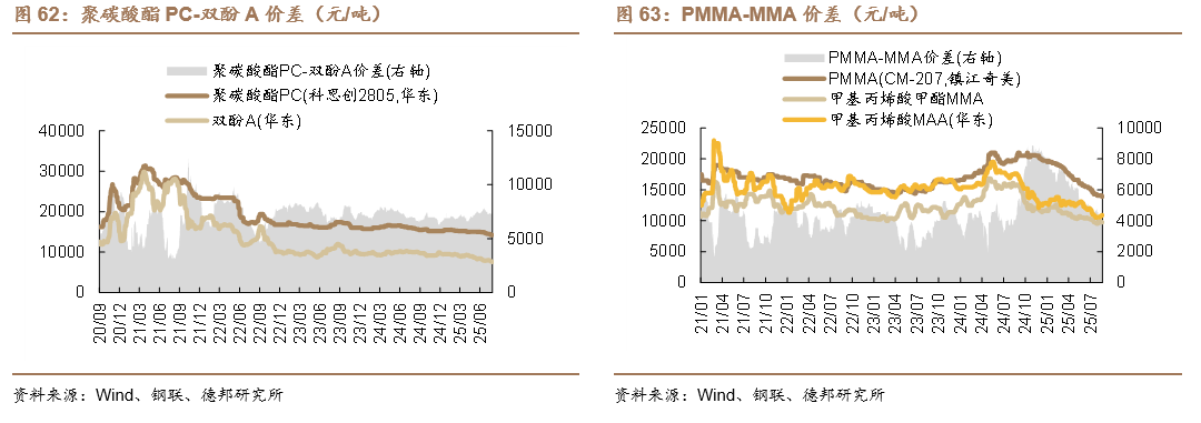 在我们监测的139种化工品中,本周有64种化工品价差上涨,15种化工品价差持平,60种化工品价差下跌。
