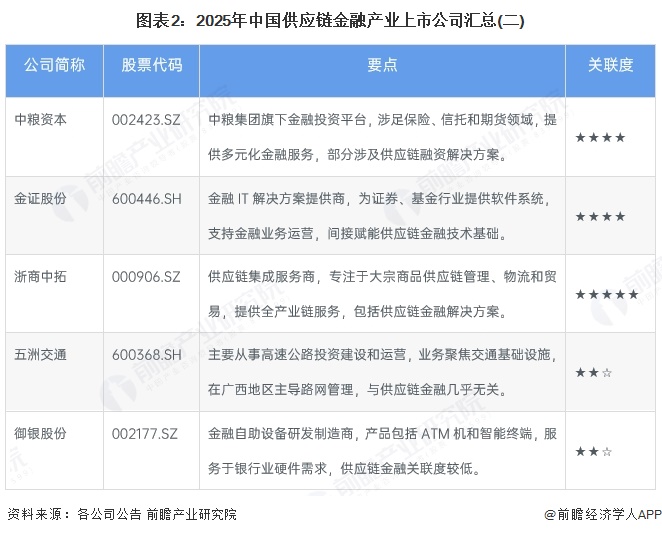 行业主要上市公司:怡亚通(002183.SZ)、联易融(09959.HK)、浙江东方(600120.SH)、飞马国际(002210.SZ)、中信证券(600030.SH)、生意宝(002095.SZ)、中科金财(002657.SZ)等