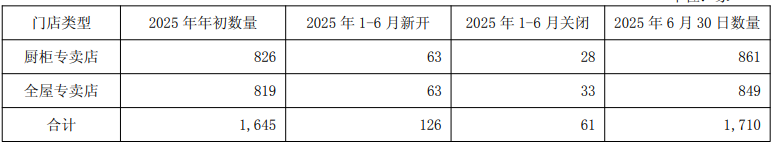 截至报告期内,我乐家居共有门店1710家,其中厨柜专卖店861家,全屋专卖店849家。