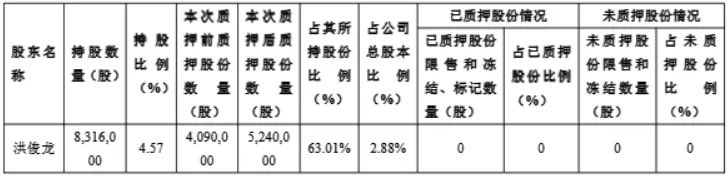 截至本公告披露日,洪俊龙先生所持质押股份情况如下: