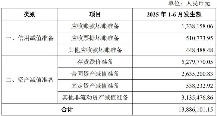 经测算,2025年半年度计提各项资产减值准备具体情况如下: