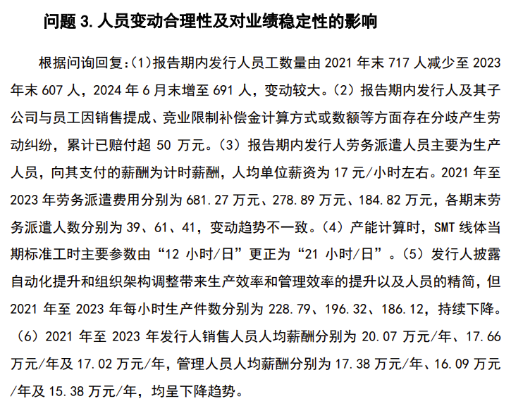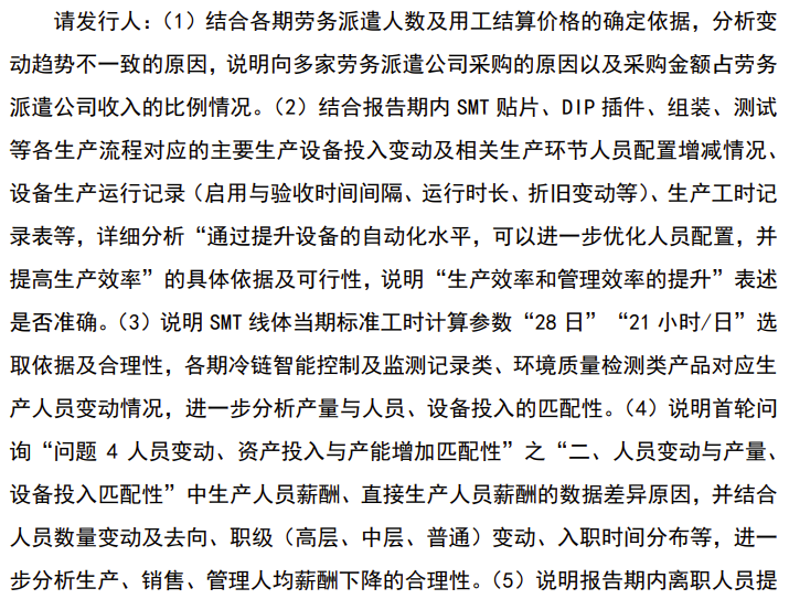 第一轮问询“问题4人员变动、资产投入与产能增加匹配性”