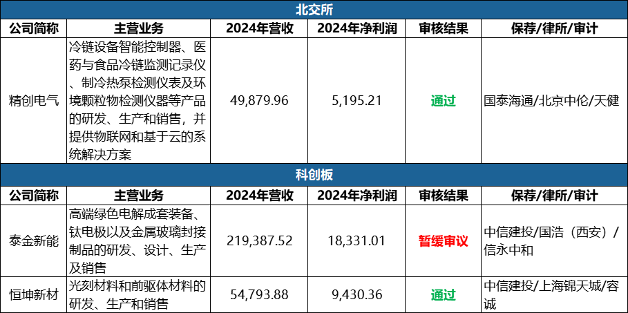 8月29日,IPO共审核3家公司(北交所1家、科创板2家),2家获得通过,1家暂缓审议。