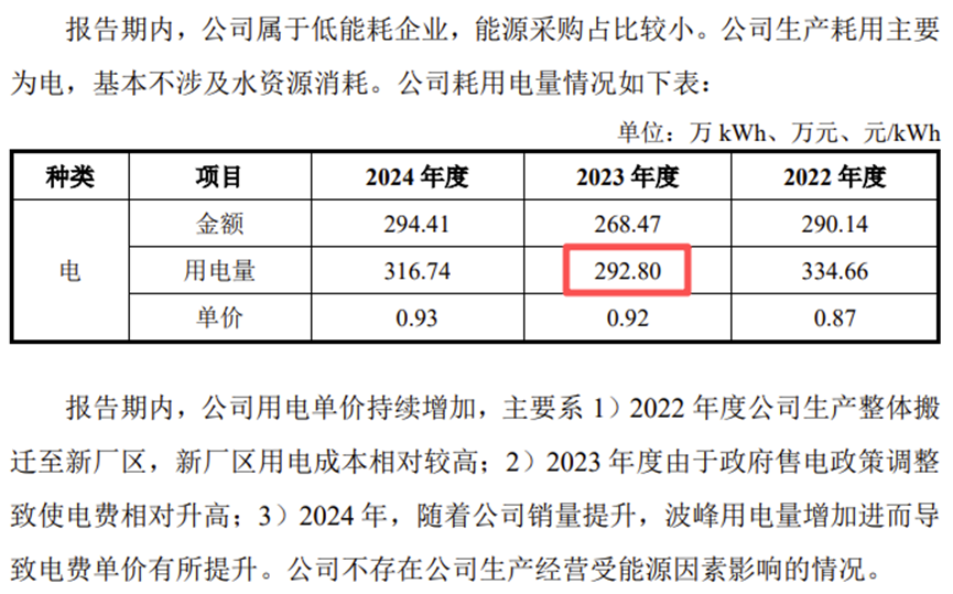 还有,2022年公司用电量292.8万度,而2022年度是334.66万度。2023年用电量只有2022年的87.51%。