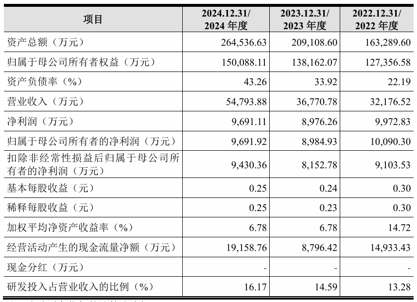报告期内,公司营业收入分别为32,176.52万元、36,770.78万元和54,793.88万元,扣非归母净利润分别为9,103.53万元、8,152.78万元和9,430.36万元。
