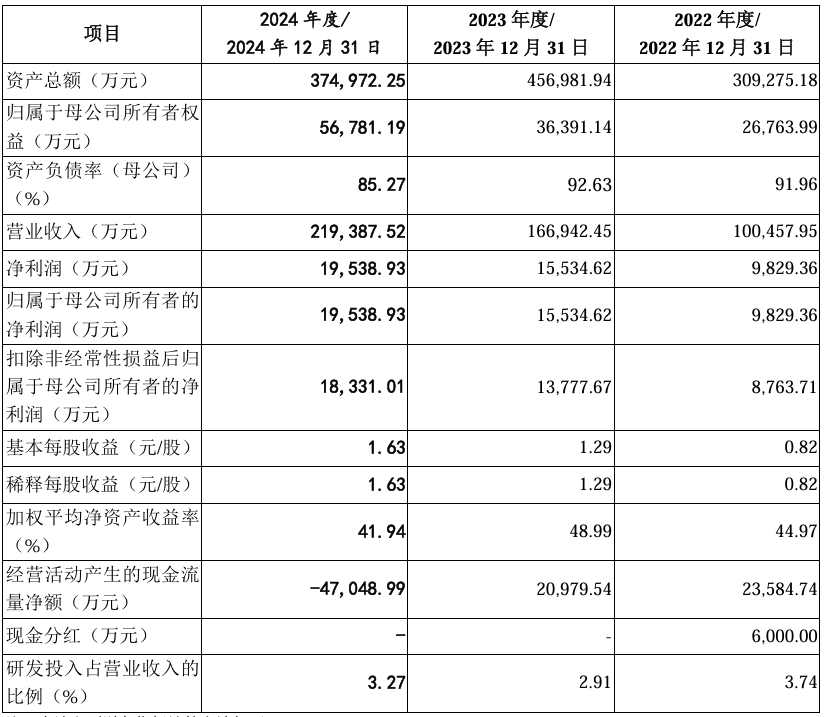 报告期内,公司营业收入分别为100,457.95万元、166,942.45万元和219,387.52万元,扣非归母净利润分别为8,763.71万元、13,777.67万元和18,331.01万元。