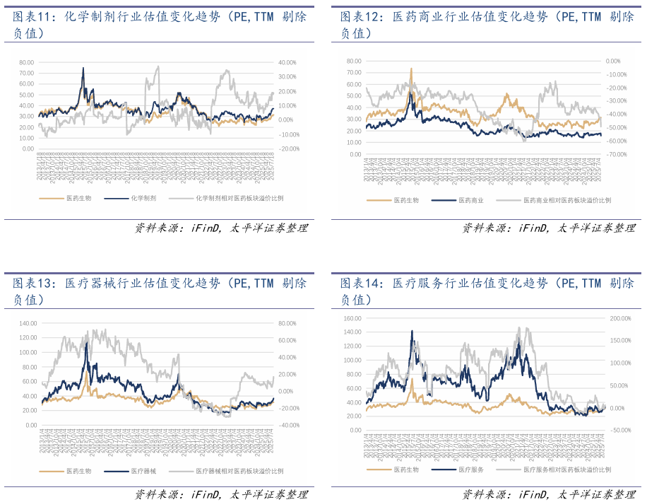 估值方面,截至8月29日收盘,以TTM整体法(剔除负值)计算,医药行业整体市盈率为31.38倍。医药生物相对于整体A股剔除金融行业的溢价率为28.14%。