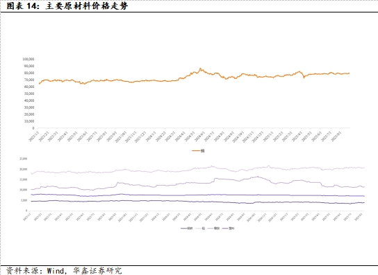 本周钢铁、铜、铝、橡胶价格均有下降。本周(8 月 25日- 8月29日),我们重点跟踪的钢铁、铜、铝、橡胶、塑料均价分别为 0.38/7.95/2.08/1.18/0.70 万元/吨,本周周度环比分别为-0.21 %/+0.58%/+0.85%/+1.03%/-0.36%。8月 1 日- 8月29日价的月度环比分别为+3.4%/-0.4%/-0.3%/+1.3%/-1.1%。