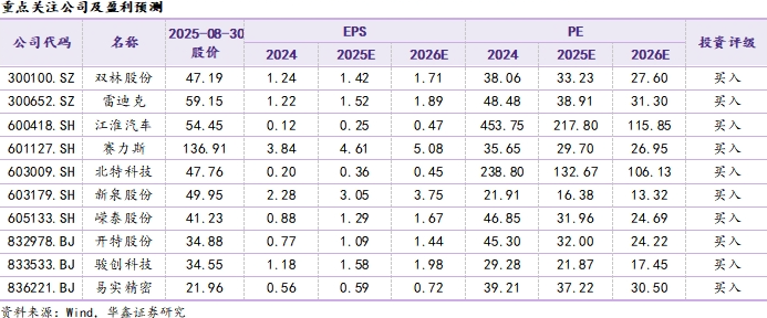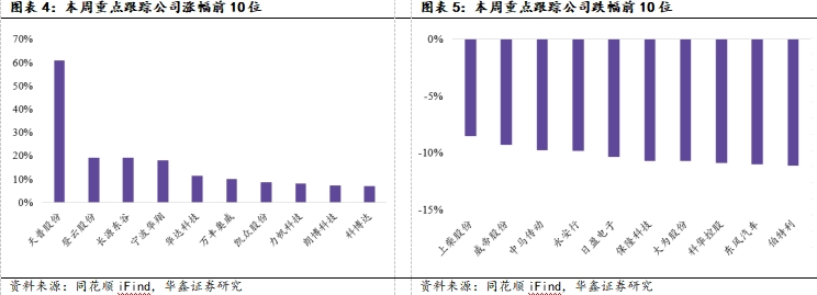 在我们重点跟踪的公司中,天普股份(61.1%)、登云股份(19.3%)、长源东谷(19.3%)等涨幅居前,伯特利(-11.1%)、东风汽车(-11.0%)、科华控股(-10.8%)等位居跌幅榜前列。