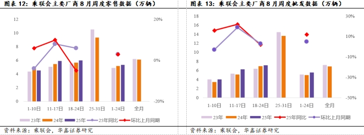 近期国际环境变数仍多,需求不足、价格下降等制约因素仍然存在,但汽车行业出口形势较好。中央各部门与各地区协力、加快落实更加积极有为的宏观政策,有力有效应对外部挑战,汽车产销出口实现较快增长。因此汽车行业的发展靠“内、外需”共同推动的趋势日益明显。近日国家反内卷行动快速推进,行业秩序明显改善。乘联会分析,由于部分厂商去年高温假较多,而且去年7月走势较强,因此去年8月初的批发并不高,今年的厂商更积极的抢时间提升销量,月初的厂商总体批发表现很好。