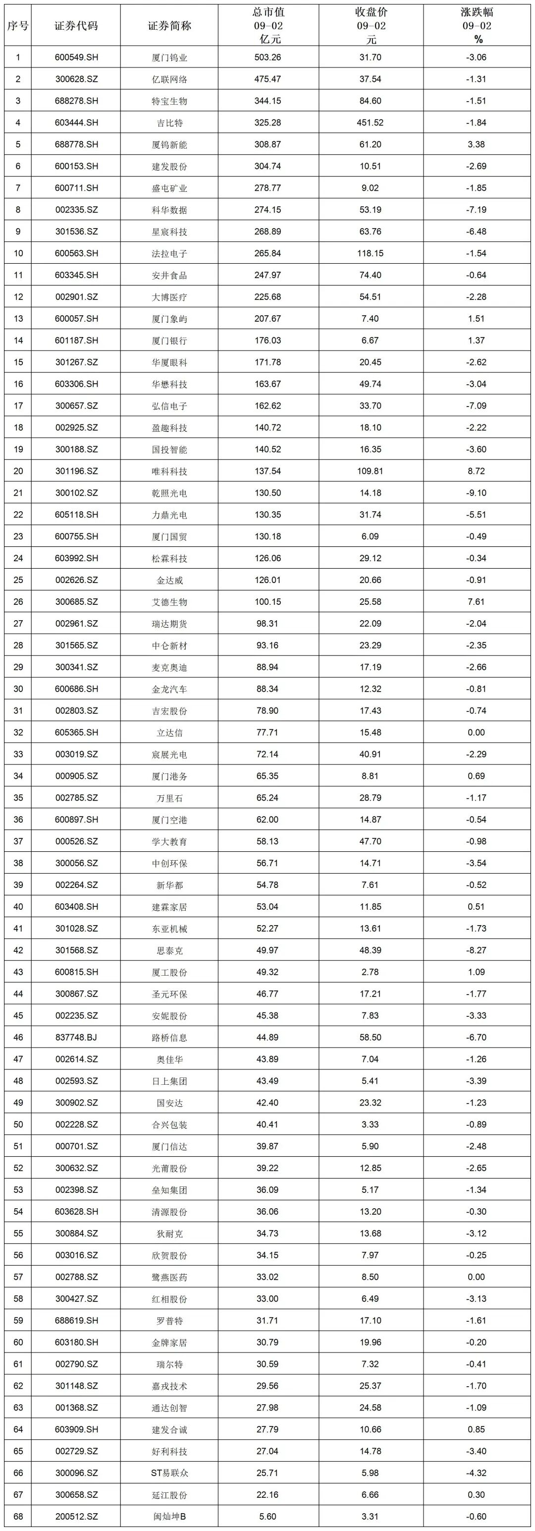 9月2日,上证综指下跌17.40点,跌幅0.45%,收盘于3858.13。辖区内上市公司总计68家,总市值7883.49亿元。