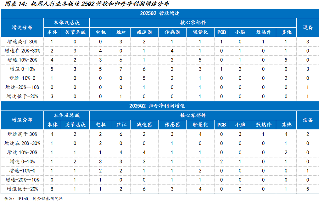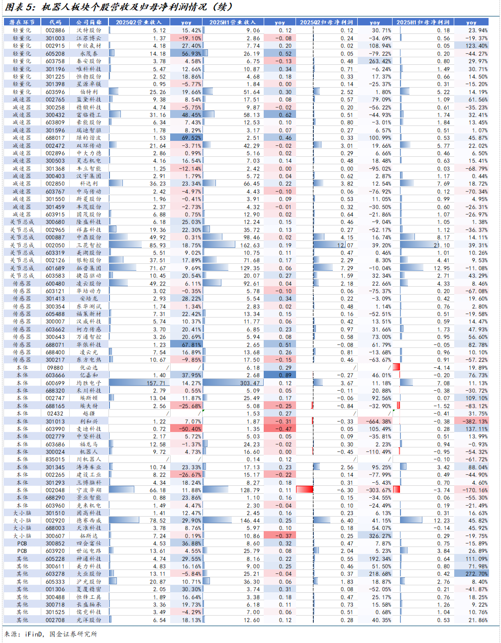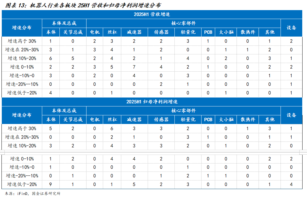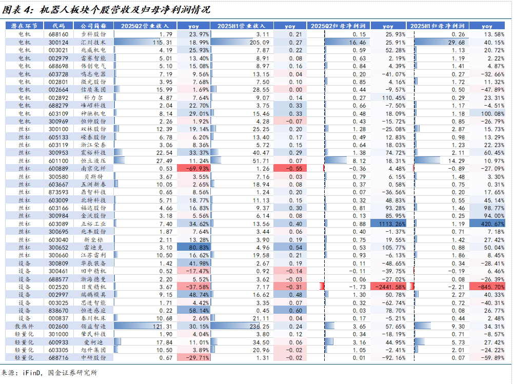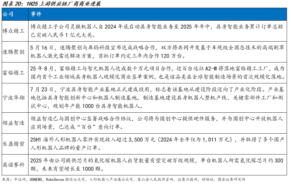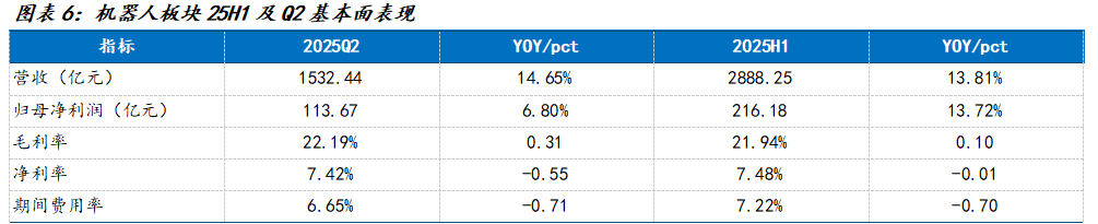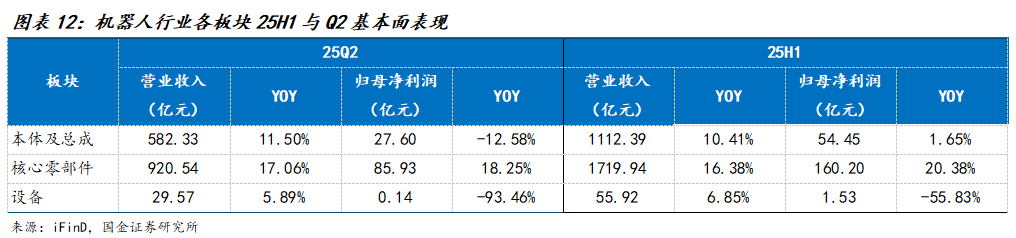 25H1,受中游本体厂商出货量快速提升影响,机器人上游供应链厂商订单规模增长,多家企业机器人业务逐步进入量产交付阶段,对整体业绩贡献显著,已成为重要的收入增长极。