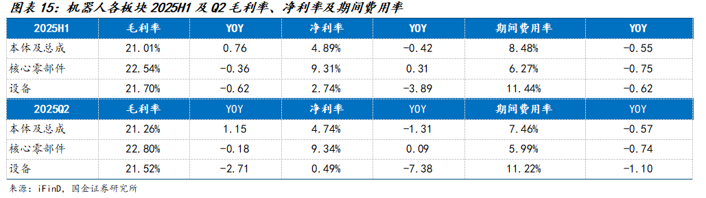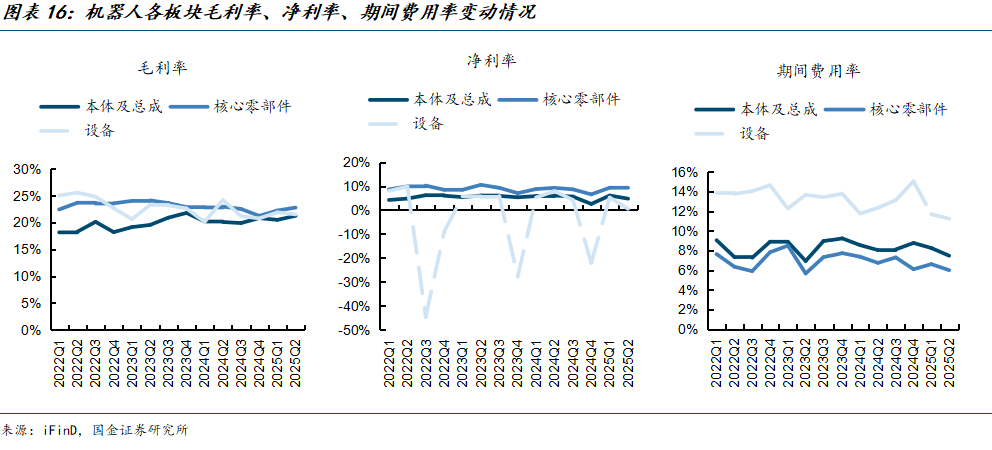 2.3盈利能力及费用情况:核心零部件盈利及成本控制能力较好,本体板块毛利率呈增长趋势