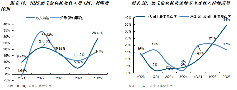 1H25燃气轮机板块收入151亿元、同比+28.4%;归母净利润实现29亿元、同比+18%;单二季度看,燃气轮机板块营收同比+34%;归母净利润实现同比+17%。