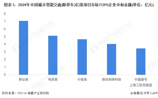 据ITS114数据统计显示,2024年我国城市智能交通(除停车)亿级项目中,中标企业排名前五分别为移动系,电信系,中铁系,海信网络科技和中国通号上海工程局集团。移动系和电信系凭借强大的通信技术实力、广泛的网络覆盖以及在数字化领域的深厚积累,能为智能交通提供稳定的数据传输和先进的技术解决方案。中铁系在交通基础设施建设方面底蕴深厚,对交通系统理解深刻,其丰富的工程经验使其在相关项目中极具竞争力。海信网络科技专注于智能交通领域,技术研发实力强劲,产品和解决方案贴合实际需求。中国通号上海工程局集团在轨道交通信号控制等方面优势明显,为智能交通项目提供专业可靠的技术支撑。