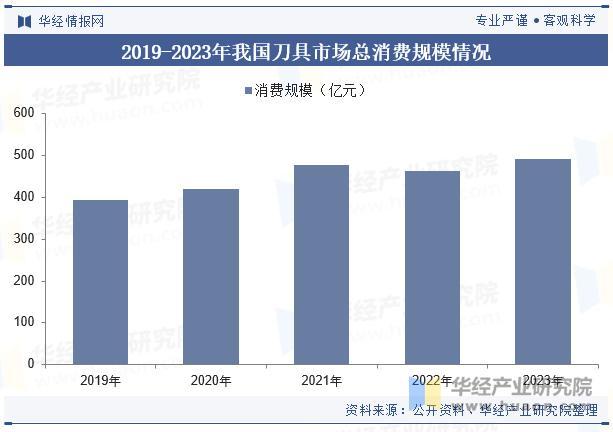 我国刀具市场消费情况与中国制造业发展水平和结构调整息息相关,随着我国经济水平快速提升和现代制造业的繁荣,我国已成为全球最大的刀具消费国之一。据统计,我国刀具市场消费规模从2019年的393亿元增长至2023年的492.4亿元,复合增长率为5.80%。